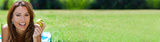 Woman Eating Apple Healthy Eating Concept Web Banner Panorama