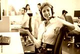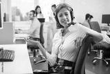 Professional helpline call center agent operator woman wearing headset working in customer care support service team office