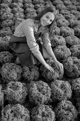 Young farmer girl posing being about to crop a nice fresh lettuce head top view