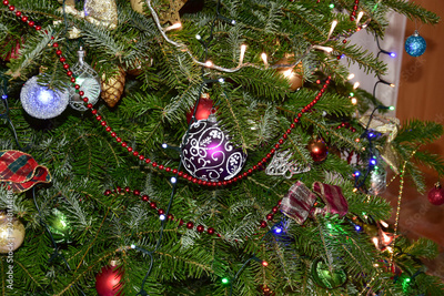 Christmas decorations, hanging Christmas tree bubbles on the Christmas tree..