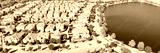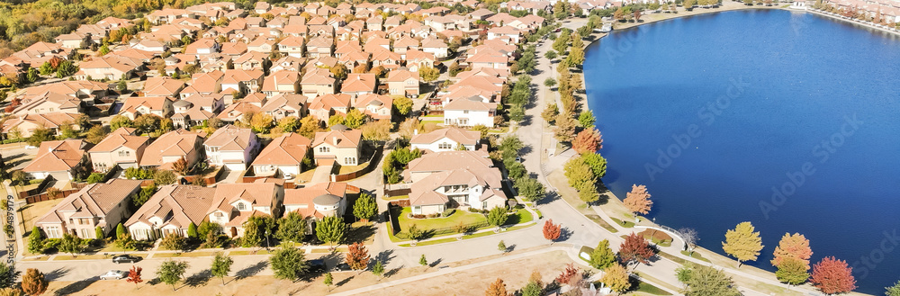 Panoramic top view lakeside Dallas suburban sprawl new development residential house city skylines