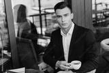 Portrait of businessman holding a cup of coffe and looking at the camera - Image