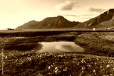 Wallpaper norway landscape nature of the mountains of Spitsbergen Longyearbyen Svalbard on a flowers polar day with arctic summer in the sunset