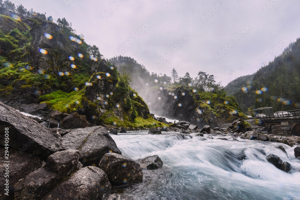 Wallpaper norway landscape nature of the mountains of Bergen waterfall fjord on summer in the sunset
