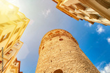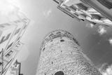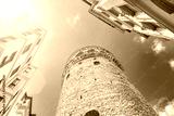 View from below of Galata Tower Istanbul, Turkey during sunny summer day. Landmark in Istanbul.