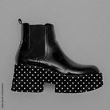 Varnished platform boots, Fashion flat lay concept