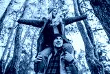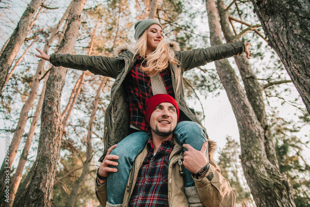 Couple travelers is so fun in the forest. Concept of trekking, adventure and seasonal vacation.