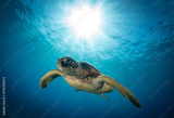 Hawaiian Green Sea turtle on a coral reef in Maui