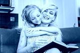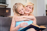 Young mother and her little princess enjoy spending spare time reading in a living room