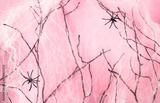 Halloween decorations scary branches and cobwebson on pastel pink background