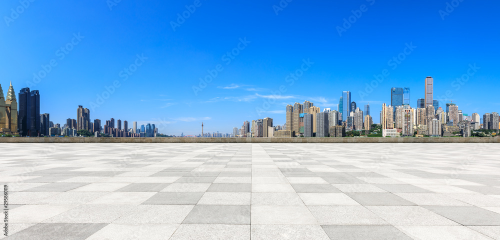 Empty floor and modern city financial district in Chongqing,China.