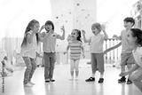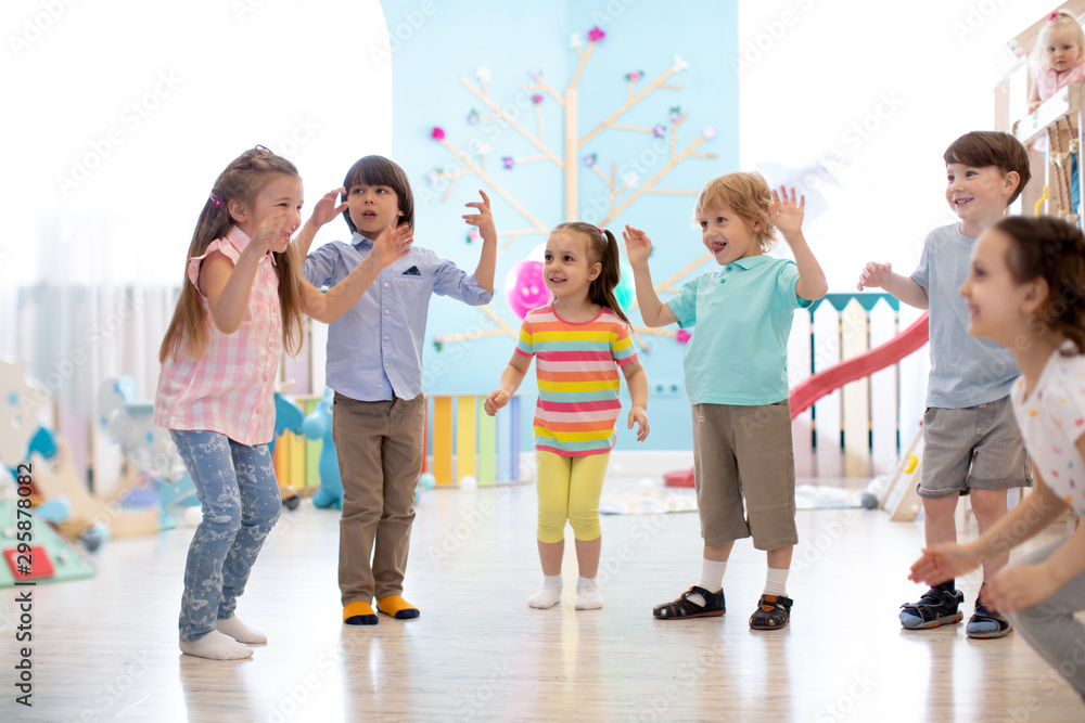 Group of happy children jumping in club. Kids playing together
