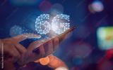 Concept of future technology 6G network, hands press smartphone and high-speed new generation networks screen interface. Wireless systems and internet of things (IOT).