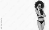 Sexy and tiny afro-american model in fashion red sunglasses.