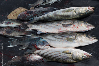 Haul of freshly caught striped and black bass near Martha's' Vineyard