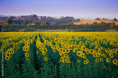 Sunflower field at dawn in Tuscany, Italy
