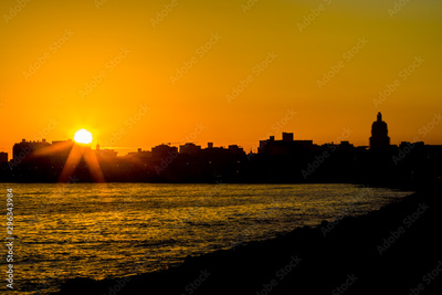 Sunrises over La Malecon, the dramatic sea wall protecting Havana, Cuba