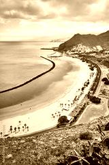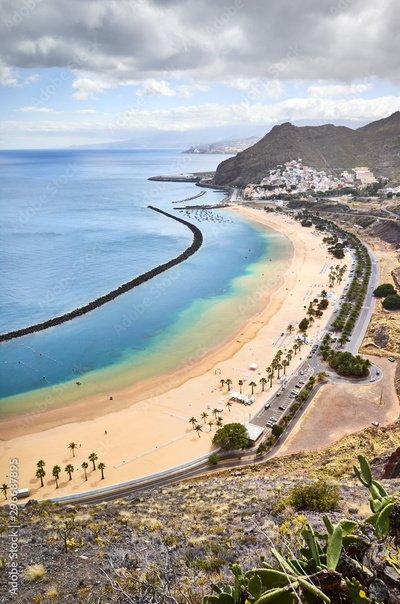 De Las Teresitas beach in San Andres from above, Tenerife, Spain.