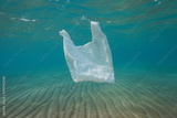 Plastic bag pollution underwater in the sea, Mediterranean, natural scene, France