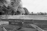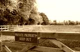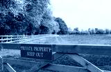Newly installed Private Property sign erected onto a farm paddock gate in a rural location.