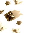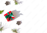 Christmas or New Year concept frame on the white background with gift boxes. Top view. Copy space