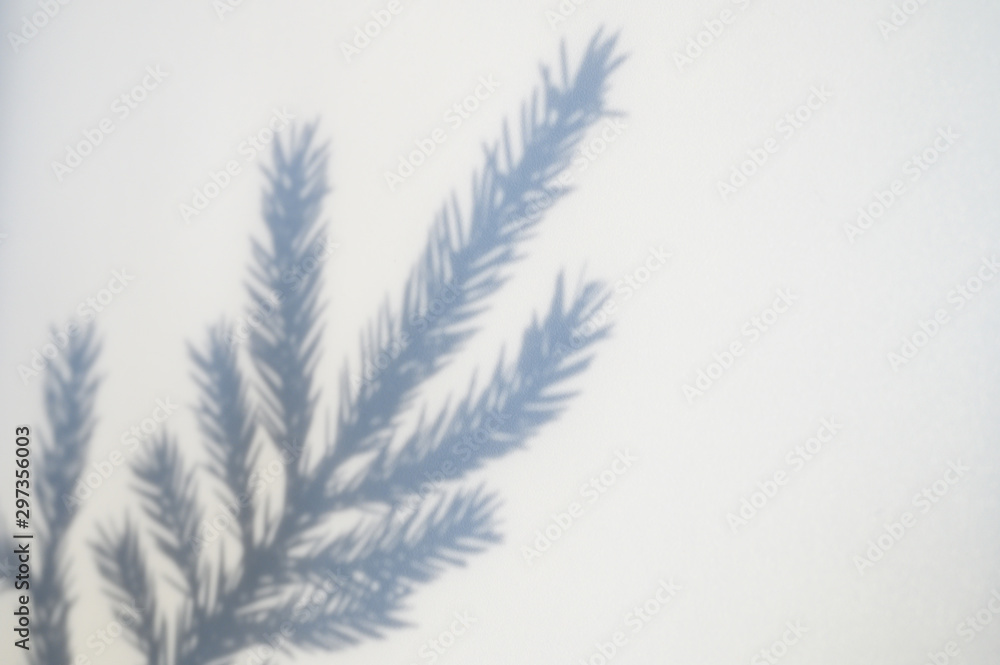 shadow from a christmas tree branch on a white-gray background of a textured surface of a wall or table. space for text