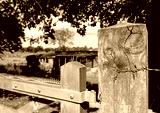 View of some abandoned makeshift buildings seen at an allotment in summer.