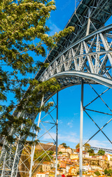 Detail of Dom Luis I steel bridge in Porto, Portugal