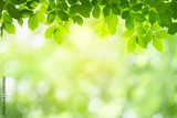 Green leaf background with beautiful bokeh under sunlight with copy space. Natural and freshness concept.