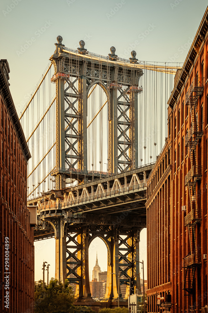 manhattan bridge while sunset, new york