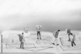 Travel Concept. Close up of group of traveler miniature figure with backpack walking and standing on passport with immigration stamped and copy space.