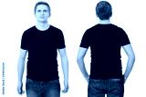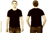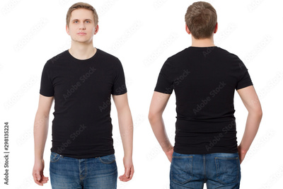 Close up Man in T-shirt black template. Guy Shirts set. tshirt mockup Front and back view. Mock up isolated on white background. Blank summer shirt. Copy space