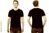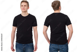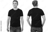 Close up Man in T-shirt black template. Guy Shirts set. tshirt mockup Front and back view. Mock up isolated on white background. Blank summer shirt. Copy space