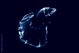 Capture the moving moment of fighting fish isolated on black background ( Betta fish )