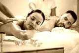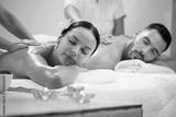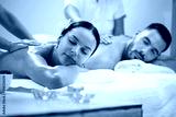 Young coupe enjoying in back massage at the spa.