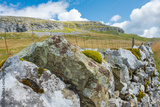 Detailed view of an ancient stone wall seen in the heart of the Yorkshire dales. The mountainous region can be seen in the background. Famous for its farming, picturesque landscape and hiking alike.