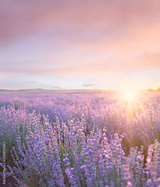 Sunset sky over a summer lavender field. Sunset over a violet lavender field in Provence, France.