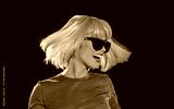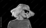nightlife, fashion and people concept - happy young woman wearing pink wig and black sunglasses in neon ultra violet light dancing over black background