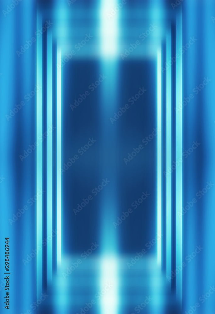 Dark abstract futuristic background. Neon lines glow. Neon lines, shapes. Blue glow, blurry lights. Empty stage background