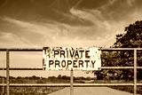 Private Property sign seen attached to a farm gate, warning members of the public not to enter the meadow as cattle roam free.