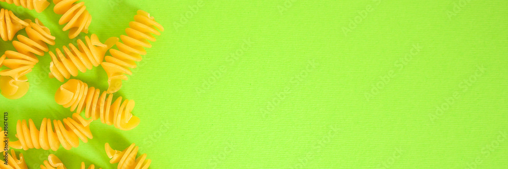 pasta Rotini, fusilli, radiatori (set of ingredient). top food background. copy space