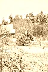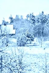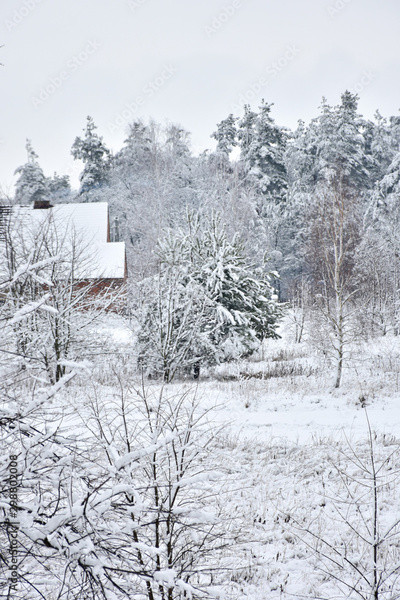 Beautiful winter landscape, white, cold wet snow enveloping the forest.