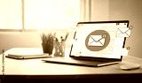 New email alert on laptop, communication connection message to global letters in the workplace.
