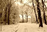 Beautiful winter landscape, white, cold wet snow enveloping the forest.