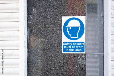 Safety helmets must be worn sign on construction building site