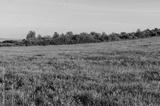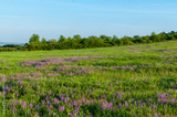 Pole fioletowych rośliny na tle wiejskiej polany