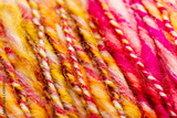 赤と黄色のニットの毛糸のテクスチャ パターン