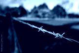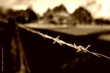 Barbed wire fence seen at the edge of a grazing field at a dairy farm