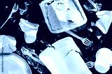 Various disposable crumpled plastic garbage isolated on a black background. Concept of recycling plastic and ecology.