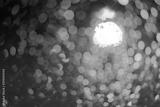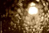 Orange night light bokeh background. City life. Blur abstract background of urban light. Warm light with beautiful pattern of round bokeh. Christmas light in the night. Street lamp blurred lights.